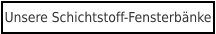 Schichtstoffe bestehen aus einer mit Hochdrucklaminat beschichteten Spanplatte. Oberfläche und Vorderkante sind mit Laminat beschichtet. Topalit-Fensterbänke wer- den in einem mehrstufigen Verfahren aus Holzspänen und Harzen unter hohem Druck gepresst. Sie sind hoch abriebfest und beständig gegen Baufeuchte. Die Oberflächen sind pflegeleicht.